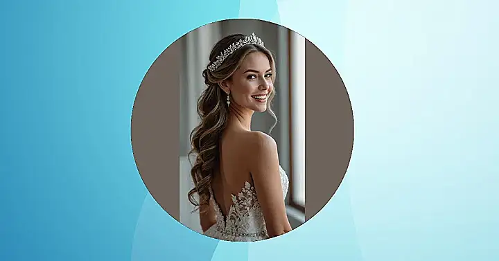 Getting ready for a wedding, especially if you’re the one getting married, probably feels like trying on a million sparkly things while your hair refuses to cooperate. But just look at this awesome hairstyle with that cool tiara! It’s like someone waved a magic wand and said, “Poof! Instant princess ready for sunshine.” This kind of half-up, half-down style with flowing curls is total hair goals if you want to look fancy without feeling like your head is glued solid with hairspray all day.