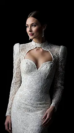 And let’s talk about those details! The delicate lace running all the way down the arm and that unexpected, super-chic cutout on the chest scream “modern fairytale.” It’s like a secret handshake between classic elegance and cool confidence. Rocking a dress like this with sleeves tells everyone you’re here to shine, looking effortlessly put-together and totally owning your unique style. Who knew sleeves could be the ultimate glow-up for a wedding dress?