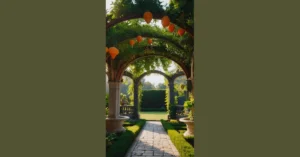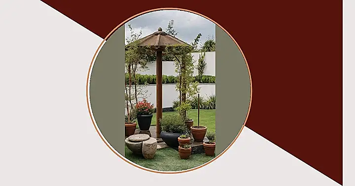 This garden looks like the ultimate VIP lounge for plants, especially with that cool, rustic umbrella-like structure chilling in the middle. You can almost picture the plants having tiny tea parties or telling tall tales about their root adventures under its shade. Those clever vines are totally pulling off a secret agent move, slowly but surely climbing up the pillars, probably whispering their plans for world domination (or just how to get more sun). It’s all about designing a space where even a tiny sprout feels like a rockstar, showing off its best angles for everyone to see.