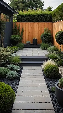 Designing a small garden is kind of like being a plant architect for tiny places. You get to pick out cool stones, arrange them in neat patterns like the path here, and find plants that aren’t going to Hulk out and take over everything. Look at how they used the dark gravel and those perfectly round bushes – it all just *fits*. It shows that even a small spot can be your personal chill-out zone, maybe for plotting world domination or just scrolling through TikTok without weird looks from the neighbours.