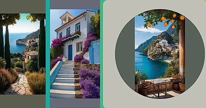 Imagine taking a picture so gorgeous, it makes you feel like you’ve stepped right into a postcard. This photo does exactly that! You’ve got this amazing blue water, a super cute town clinging to a cliff, and even some citrusy decorations hanging above. If this view doesn’t make you want to grab your camera and start snapping, I don’t know what will.
