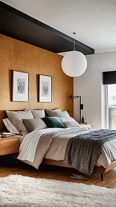 And don’t miss that sleek bench at the foot of the bed – it’s just begging to hold your pile of homework you swear you’ll get to, or maybe serve as a landing strip for your favorite hoodie. The cool textured wall and those unique light fixtures definitely give this bedroom a super stylish upgrade, making it feel less like a sleeping box and more like a fancy hotel suite where you actually want to hang out. If you’re thinking about making your own space this awesome and ready to go, this picture is basically screaming inspiration for anyone who dreams of turning their room into the ultimate chill zone, no complex interior design degree required.
