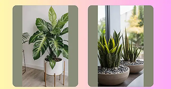 Worried about keeping a plant alive? Don’t stress! The tall, spiky guys shown here, often called Snake Plants, are basically the superheroes of easy-care indoor decor. They don’t need constant watering or fancy sunbathing routines. You could probably forget about them for a bit while you’re busy doing… well, whatever you’re busy doing, and they’ll still look great. They’re the perfect way to add some fresh green vibes without the drama of trying to raise something high-maintenance.