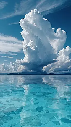 Have you ever seen a cloud so big, it looked like it was trying to escape into the ocean? Well, this wallpaper has that exact vibe! The water is so clear and blue, it’s like a giant swimming pool just begging for you to cannonball in. If you stare long enough, you can almost feel the ocean breeze and hear the seagulls squawking…or maybe that’s just your little brother.