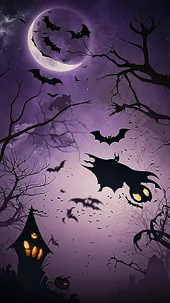 If you want to add a bit of spooky fun to your phone or computer, this wallpaper is the perfect choice! Just imagine how many bats you can count! It’s like a spooky game of “I Spy” with a whole lot of wings. So grab your phone and get ready to get batty for Halloween!