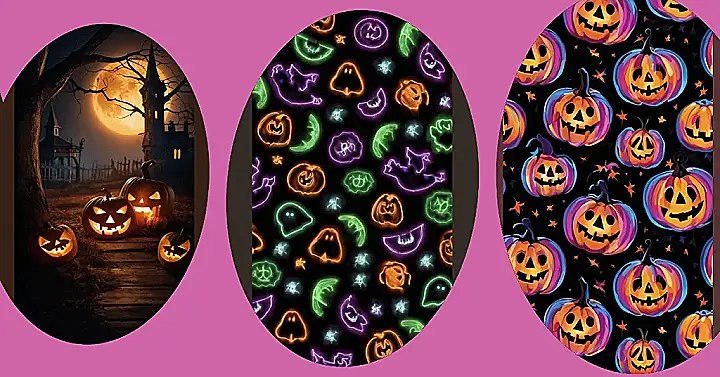 This wallpaper is like a neon rave for ghosts and pumpkins! It’s got all your favorite Halloween characters glowing in the dark, like a bunch of party animals. Imagine these spooky shapes shining on your phone or computer – it’s definitely going to make your screen the coolest ghoul in the house!