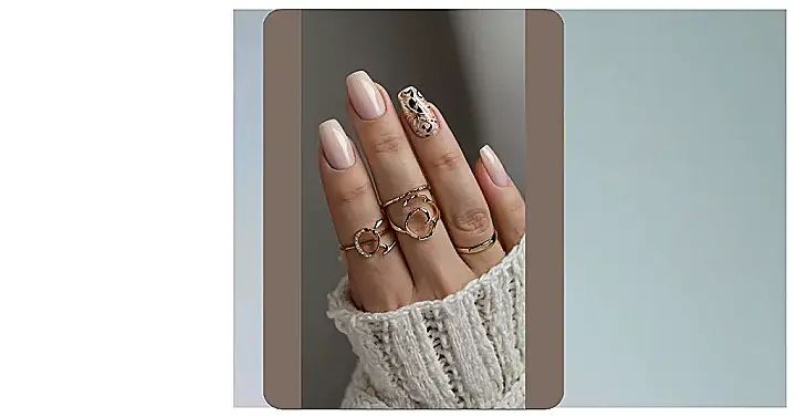 So, spring break is coming up, and obviously you need killer nails, right? Forget those basic block colours – this look is all about being sophisticated with a splash of fun. Think of it as your nails saying, “Yes, I’m ready to relax on the beach, but I’m also totally prepared to accidentally win a chess tournament.” The subtle nude base with the one accent nail is like the cool kid who isn’t trying too hard, but still manages to turn heads.