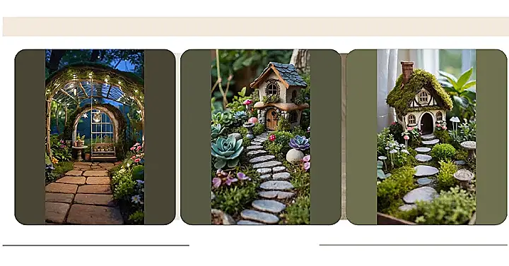 Imagine if your backyard suddenly shrunk down to the size of a dollhouse – but instead of dolls, it was populated by sassy fairies! This picture is like a cheat sheet to building their dream home. Look at that tiny greenhouse all decked out in twinkle lights! I bet the fairies host the best garden parties, serving up dandelion tea and gossiping about which firefly has the brightest sparkle.