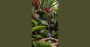 This isn’t just any old garden; it’s a dream garden come to life! With its charming fountain as the centerpiece, surrounded by vibrant flowers and carefully planned landscaping, it’s the epitome of peaceful beauty. The arched walkway covered in ivy feels incredibly cozy, and the soft lighting makes it even more inviting. It’s like stepping into a secret world where worries melt away, and all that’s left is the serene beauty of nature. You could almost believe fairies might dance here after dark!