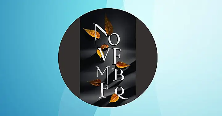 This image is like a stylish calendar for November. The silver letters “NOVEMBER” are all fancy and elegant, and the leaves are like little reminders that autumn is here. It’s kind of like the leaves are saying, “Hey, it’s time to get cozy and enjoy the cooler weather!”