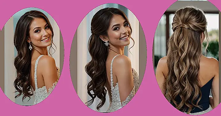 Let’s start by embracing the elegance of half up and half updos. For those who want the best of both worlds, combining the sophistication of an updo with the flowing beauty of hair down is a game-changer. Whether you’ve got long waves or medium-length tresses, this style accommodates everyone—from straight strands to curly cues! Not to mention, it works wonders with bangs, giving you that perfect blend of polished and playful.