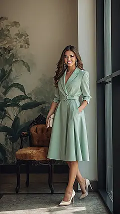 This outfit is so *chique* (that’s basically fancy talk for super stylish), you might feel ready to walk into school like you’re the star of a music video. That blazer-dress combo is seriously cool, making you look put-together without looking like you tried too hard. It’s like wearing confidence in mint green! You could totally rock this for a fancy school event, a family get-together, or just posing dramatically by a wall because the lighting is perfect.