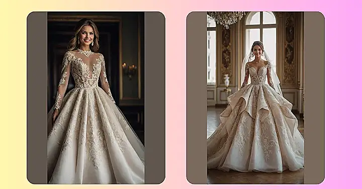 Wearing something this fancy probably feels like stepping straight out of a historical romance movie, minus the corsets that make breathing optional (thank goodness!). With all that glorious fabric and sparkle, you’d definitely feel like royalty floating down the aisle. Just remember to lift the hem when you walk upstairs, or you might accidentally sweep the floor and get a workout you didn’t sign up for. It’s all about embracing the drama and looking absolutely stunning, even if you need a team of experts to help you turn around.