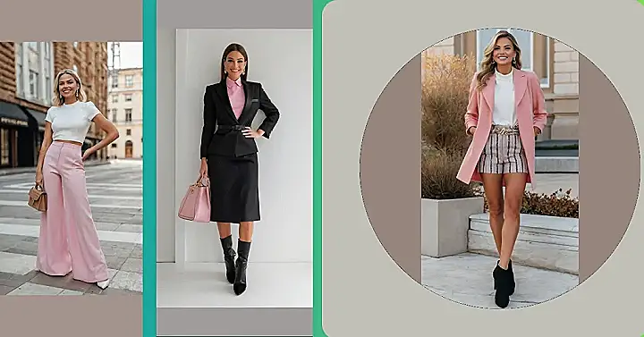 This girl is totally rocking the “pink women outfits” look! She’s paired a crisp white shirt – perfect for keeping cool – with some seriously stylish wide-leg pink trousers. It’s like a breath of fresh air, a splash of fun, and the perfect outfit for a stroll down a sunny city street. Imagine how comfy those pants must be, especially if you’re off on a shopping spree or a day with your friends!