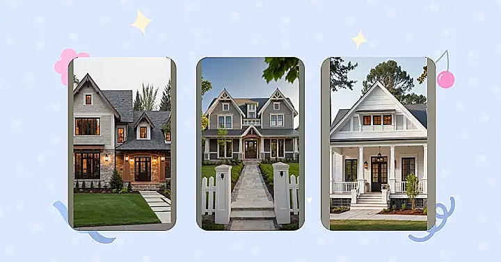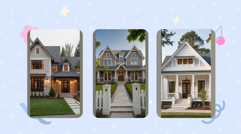 Check out this house! It looks like it was designed by someone who really loves their job, because every detail, from those cool exposed wood beams on the porch to the neat gabled roofs, just screams ‘I’m awesome!’ You can almost feel the solid vibe of this Craftsman house, like it’s saying, ‘Come on in, I’ve got enough sturdy charm to handle anything – even your little brother’s loudest video game session.’ The grey siding and crisp white trim give it that classic, timeless look, and that inviting stone pathway practically rolls out the welcome mat, making you want to grab a lemonade and chill on the porch.