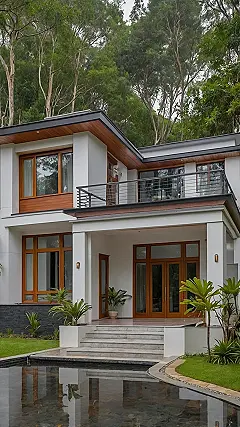 Gaze upon this masterpiece, a true single family house that practically screams, “No more fighting over the last slice of pizza in cramped quarters!” With those massive windows and that sleek balcony, you could have your own private concert up there, or at least a super chill study spot away from, well, everyone. The cool water feature by the front door practically rolls out a red carpet, making every day feel like you’re arriving at a five-star resort instead of just, you know, home.