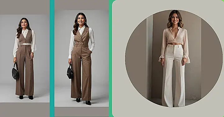 Forget trying to squeeze into those skinny jeans that feel more like a second skin than actual clothes. This outfit, featuring those super comfy, super chic wide-leg trousers, is basically saying, “My legs need space, thank you very much!” The way they flow means you can sneak in an extra dance move or two without feeling restricted, or maybe just look effortlessly cool while walking to class. Paired with that smart vest and crisp white shirt, it’s like you’re ready to conquer the world, or at least ace your next presentation – all while feeling like you’re wearing your most stylish pajamas.