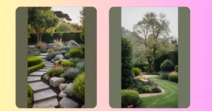 So, imagine your backyard but with a serious upgrade – like it suddenly got a passport and decided to visit Italy for style tips. This spot in the picture is basically that upgrade! Look at that cool wooden lattice doing its thing, letting the plants show off their climbing skills like tiny green ninjas. And that stepping stone path? It’s practically rolling out the red carpet (or maybe the grey and pebble carpet?) for you to stroll through looking extra fabulous, maybe even practicing your suave Italian accent as you go. It’s definitely not your average patch of dirt.