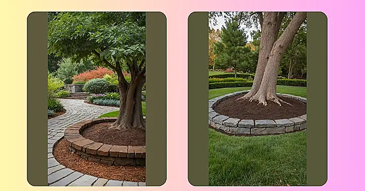 Putting all these cool things around the base of the tree isn’t just for show, though it definitely makes the tree feel special, like the star of the garden. This snazzy setup keeps pesky weeds from trying to crash the party and makes sure the ground around the trunk stays happy and healthy. It also looks way better than just a plain patch of dirt. So next time you see a tree with a cool rocky ring or a little green skirt around its base, remember it’s probably just enjoying its personalized, landscaped zone – the ultimate tree lounge where only the coolest roots are allowed.