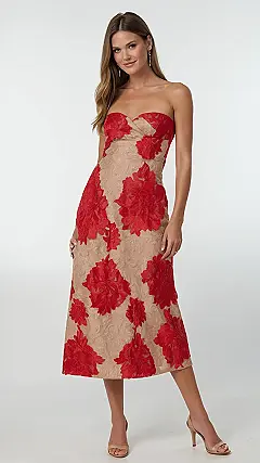Stepping out in a midi dress like this means you’re rocking that perfect length that screams “I’m stylish and sophisticated, but also I could probably still run for the last slice of pizza if I needed to.” It’s the ultimate balance of glam without being too over-the-top, giving you all the confidence to smile and shine. Plus, with all those gorgeous flowers, you might just find yourself a little extra pep in your step, ready to conquer any occasion, one fabulous petal at a time.