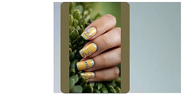 Seriously though, who needs a bracelet when you’ve got a whole row of sparkly gems glued to your nails? It’s like your fingers are throwing a tiny party, and everyone’s invited (especially the sun, so it can reflect off all that bling). Just try not to blind anyone while you’re texting – these nails are seriously attention-grabbing!