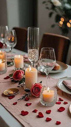 Now, with a table looking this incredibly dreamy, the big question is, what deliciousness are you even supposed to eat here? You almost feel like you should be whispering compliments to the mashed potatoes! This isn’t just eating a meal; it’s practically starring in your own rom-com scene, complete with elegant glasses that probably make tap water taste fancy. Just try not to accidentally dip your elbow into a candle or mistake a rose petal for a fancy garnish. This setup proves that sometimes, the best part of a romantic dinner isn’t just the food, but all the super charming, slightly dramatic effort that makes everyone feel like they’ve just stepped into a fairy tale (or at least a really nice restaurant).