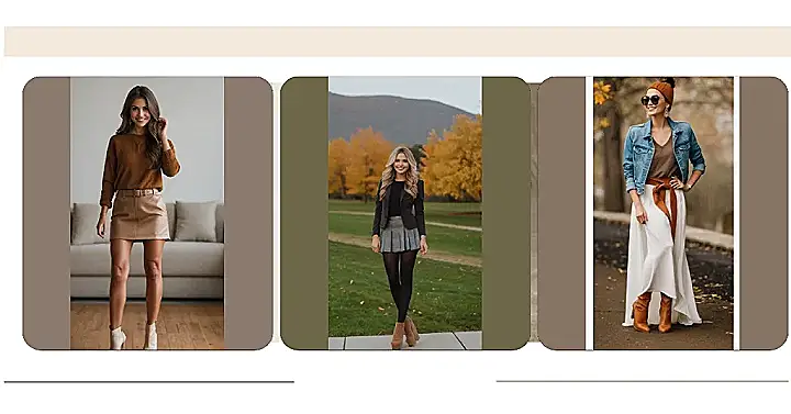 This outfit is perfect for a day of wine tasting at a cozy winery. Imagine yourself strolling through the vineyards, the crisp fall air nipping at your nose, and a glass of delicious red wine in your hand. The white jeans and brown booties give a classic look, while the blazer adds a touch of sophistication. The brown leather skirt is the perfect way to embrace the fall colors, just like the leaves changing on the trees.
