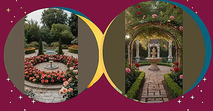 And seriously, check out those fountains acting like the VIP section for all the rose bushes, making the whole vibe feel incredibly peaceful and elegant. With stone pathways winding through the vibrant blooms and a lush archway dripping with roses in the background, this isn’t just a garden; it’s an entire experience. Who needs boring shrubs when you can have a front yard that looks like a royal party? You just know whoever tends to this masterpiece probably has a magic wand, or at least a very dedicated team of squirrels on weed patrol.