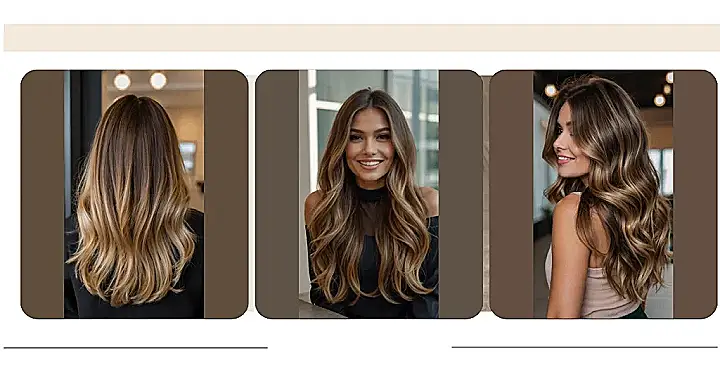 This hairstyle is like a summer vacation for your hair! Imagine walking on a beach, feeling the sun on your face, and BAM! Your hair looks just as gorgeous as the golden sunset. Those lighter blonde highlights are like tiny sunbeams woven throughout rich, dark brown strands – a total beach babe vibe without even needing a trip to the coast. It’s totally dreamy and perfect for anyone wanting low-maintenance glamour.