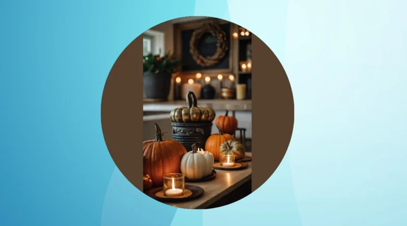 This picture makes you want to curl up with a cozy blanket and a warm drink, right? But instead of bright orange and red decorations, we’ve got a more subdued fall theme going on here. It’s like someone said, “Let’s keep it classy,” to the usual pumpkin patch vibes. The white pumpkins and dried flowers add a touch of elegance, making your home feel sophisticated, even when you’re just having a chill night in. It’s like a fancy pumpkin patch!