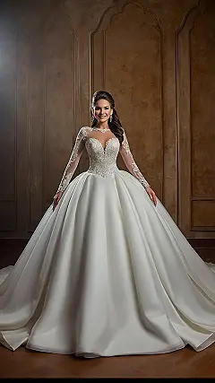 That dress is a total showstopper, right? And those sleeves! Long and flowy but not too hot for a summer wedding, plus they’re covered in details. Think of all the Instagram photos! You’ll look like you stepped straight out of a fairytale, but a fairytale where you’re totally in charge and having the best time ever. Just don’t trip on the train while you’re making your grand entrance!