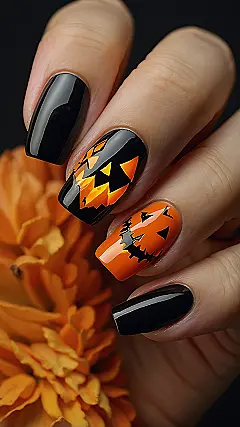 Want to show off your Halloween spirit without lugging around a giant pumpkin everywhere? This awesome nail art is your answer! Instead of just going for a basic black, you can totally rock these contrasting orange and black designs that scream ‘spooky chic’ and perfectly match all the autumn vibes. It’s a super fun way to get creative and make your hands part of your costume, making everyone do a double-take – maybe even drop an extra mini chocolate bar in your bag when they see how on-point your festive claws are!