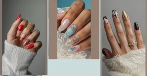 Look closer, and you’ll see some nails rocking intricate spiderwebs and spooky tree branches that look like they’re straight out of a haunted forest. These aren’t just nails; they’re tiny canvases of pure Halloween magic! They’re perfect whether you’re planning an epic costume or just want to show off your spooky spirit while handing out candy (or collecting it, no judgment!). Your friends will totally be asking where you got this amazing Halloween nail inspiration from.