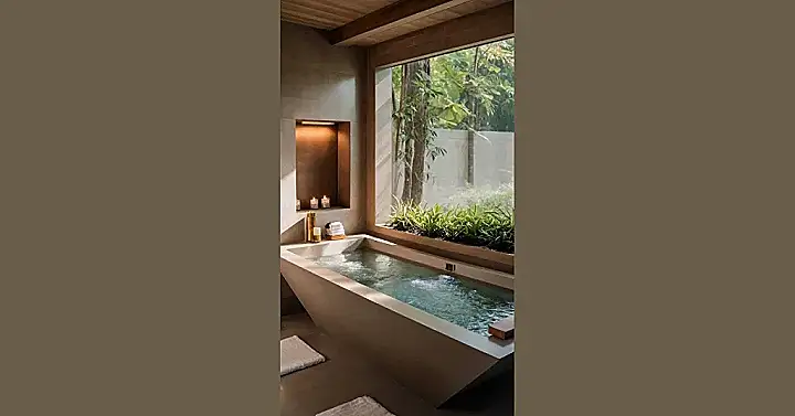Peeking out that massive window, you’ve got your own personal nature show, complete with leafy trees and cool mist. It’s like a secret garden, but instead of tending to plants, you’re soaking your worries away in that super sleek tub. Just make sure nobody’s actually *in* the jungle watching you float! This kind of bathroom interior design isn’t just about looking good; it’s about creating a whole vibe, making even a quick bath feel like an escape from sibling squabbles and endless group chats. Honestly, if my bathroom looked like this, I might never leave – sorry, mom!