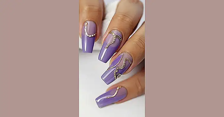 These nails are so fancy, they probably have their own Instagram account and a personal stylist. I bet they order avocado toast at brunch and only drink organic smoothies. Seriously though, that shade of purple is gorgeous, and the little gold chains? Total game-changer. Now I just need to figure out how to recreate this without accidentally gluing my fingers together.