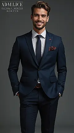 This guy looks like he’s ready to take on the world, one stylish step at a time! His sharp blue suit is like the ultimate power move – it screams “I’m here to impress and I’m not afraid to show it!” And that little pocket square? Pure genius! It’s like the cherry on top of an already amazing sundae. He’s definitely got the whole “men’s fashion” thing down.