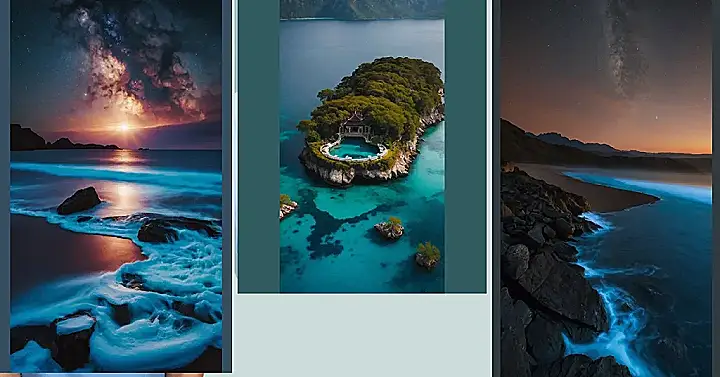 The picture looks like something straight out of a fairytale! Imagine walking along the beach at night, the sand cool under your feet. The sky is like a giant, sparkly blanket, with the Milky Way stretching across like a river of stars. The water is so clear, you can almost see the fish swimming through the waves. It’s the kind of place where you feel like you could just disappear into the magic and forget all your troubles.