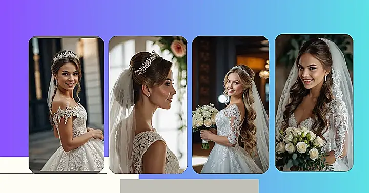 Picking the perfect veil and crown combo is like choosing your superpower for the day. Do you go for a dramatic long veil that flows behind you, making you feel like a total movie star? Or a cute birdcage veil for vintage vibes? And don’t even get me started on crowns – from delicate headbands to full-blown tiaras that scream “I am royalty!” It’s all about finding that perfect touch of sparkle and drama to make your amazing hairstyle shine even brighter as you celebrate.