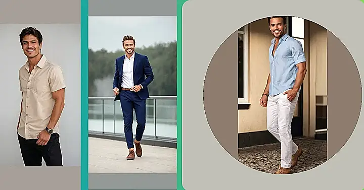 Looking for a shirt outfit that screams ‘I woke up like this and still look amazing’? Well, feast your eyes on this! Our guy here shows how a simple, light-colored button-up can be your secret superpower. It’s like the Swiss Army knife of clothes – fancy enough for grandma’s birthday dinner, chill enough for hanging out with friends, and perfect for when you just want to look good without trying too hard. Plus, notice that relaxed open collar? It’s practically inviting good vibes and maybe a few compliments!
