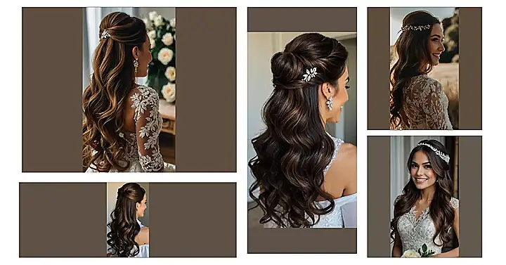 Imagine this: you’re walking down the aisle, your hair is flowing like a shampoo commercial, and your tiara is catching the light like you’re the main character in a movie. All thanks to the magic of pinning half your hair up! It’s the ultimate bridal hairstyle – elegant, but also totally practical for when you’re hitting the dance floor and need to keep your hair out of your face while doing the Macarena.