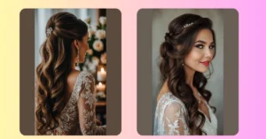 And as for the long-haired brides, can we just take a moment to admire the versatility you have? Half down long hairstyles allow for fun styling options, whether you want curls that flow like a waterfall or sleek, sophisticated strands pulled back. The possibilities are endless! You’ll be turning heads with your graceful silhouette as you dance the night away with style and poise.