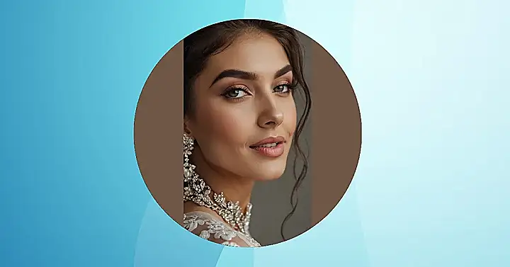 The picture shows a bride who looks absolutely stunning. Her hair is styled perfectly, with a sparkling tiara that makes her look like a real-life princess. The makeup is just as amazing, with flawless skin and a touch of shimmer on her eyes. It’s like she stepped out of a fairytale!