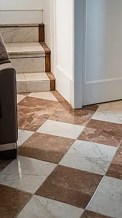 And let’s be real, a floor like this is not just for looking good – it’s practically a built-in game board! You could play a giant game of checkers with oversized pieces, or maybe just practice your fancy footwork without getting lost. Plus, those cool marble-like swirls in the tiles? They add a touch of fancy without being all “too serious,” making sure your space feels super chill and not like your grandma’s super formal living room. So, if you’re dreaming up your perfect pad for 2026, remember this checkerboard vibe. It’s a design that’s ready to make your future home feel totally fresh and fun, proving that some classics just get cooler with age!