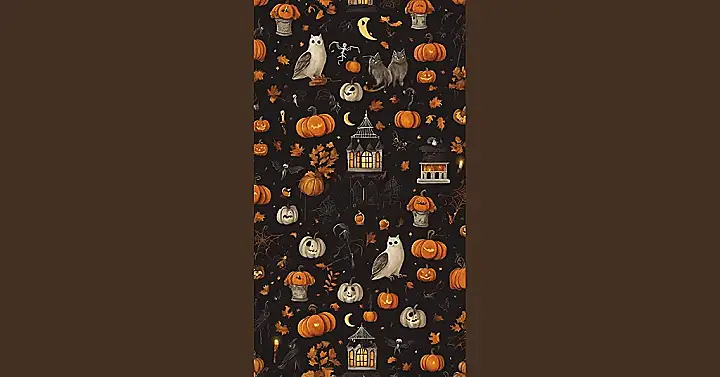 Get ready to totally transform your screen with this awesome Halloween wallpaper! It’s like a big, friendly, slightly spooky party happening right on your device. We’ve got a whole gang of cool characters, from wise-looking white owls perched calmly to playful black cats who might just be plotting their next nap (or a very sneaky pounce!). Plus, a whole bunch of grinning jack-o’-lanterns and some ghostly white pumpkins are scattered around, bringing all the festive vibes. With glowing haunted houses and autumn leaves swirling, this background is packed with happy haunts and good times, perfect for getting into the spirit of the season.