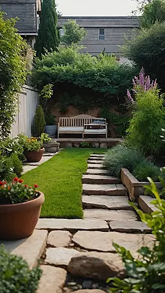 This isn’t just any garden; it’s a carefully curated collection of plants and textures that invite you to relax and unwind. From the neatly arranged stone path to the lush greenery surrounding the sitting area, every detail has been thoughtfully considered. It’s the kind of place where you could easily lose track of time, completely lost in the beauty and serenity of your own personal oasis. Now, if only I had a garden like this, my homework would magically get done!
