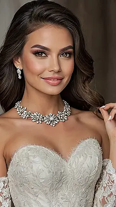 This bride is totally rocking the Hollywood waves look! Her hair is like a waterfall of gorgeousness, all shiny and wavy, and that sparkly headpiece? It’s like she’s a real-life princess getting ready for her happily ever after. Seriously, she looks like she walked straight out of a movie – maybe a rom-com where the wedding is amazing and everyone cries happy tears (except the evil stepmother, of course).