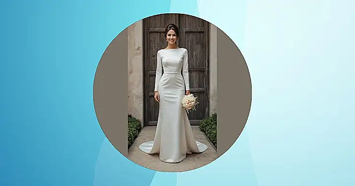 Forget about those giant, cupcake-looking wedding dresses that practically require their own zip code! This stunning gown is here to prove that you can absolutely slay on your big day without tripping over five layers of tulle. We’re talking ‘modern minimalist’ at its finest, where sleek lines and a fabulous fit take center stage. Just look at the way this dress hugs every curve (in a totally classy way, of course!) before gracefully flaring out like a fancy mermaid tail, ready for you to make the most epic entrance. Plus, those sheer sleeves and neckline panels? Totally adding a cool, contemporary vibe without going overboard, letting you show off your style without feeling like you’re wearing a costume.