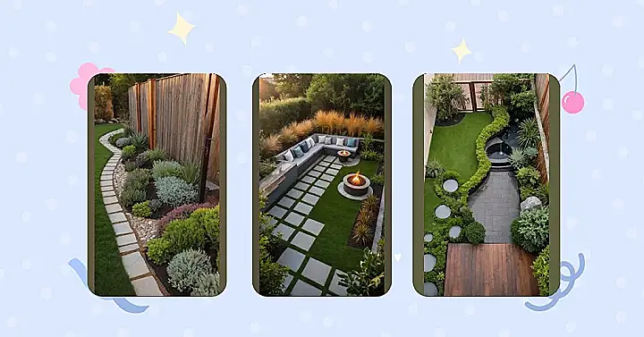 The way those stepping stones are laid out isn’t just a path; it’s practically a red carpet guiding you through your swanky, compact oasis. And those fluffy, golden plants lining the fence? They’re like nature’s own privacy curtains, adding a touch of glam and making your small space feel way more expansive and mysterious. This whole design is a masterclass in making every single inch count, turning what could be a forgotten corner into a vibrant, happening spot. Who knew that careful planning could make your backyard glow-up so hard, giving you the perfect backdrop for everything from late-night chats to the most Insta-worthy moments?