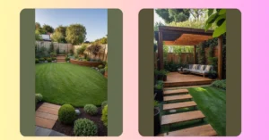 This garden is basically saying, “Who needs a giant estate when you’ve got style?” It takes what could be just a regular patch of grass and turns it into an epic adventure zone, perfect for a small space garden design. Notice how the grass path isn’t just straight but curves like a happy green snake, leading your eye past cool stepping stones that are just begging for a game of ‘don’t step on the cracks.’ It’s like a secret level in your favorite game, making the whole area feel way bigger and more exciting than it actually is!