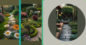 This garden is basically saying, “Who needs a giant estate when you’ve got style?” It takes what could be just a regular patch of grass and turns it into an epic adventure zone, perfect for a small space garden design. Notice how the grass path isn’t just straight but curves like a happy green snake, leading your eye past cool stepping stones that are just begging for a game of ‘don’t step on the cracks.’ It’s like a secret level in your favorite game, making the whole area feel way bigger and more exciting than it actually is!